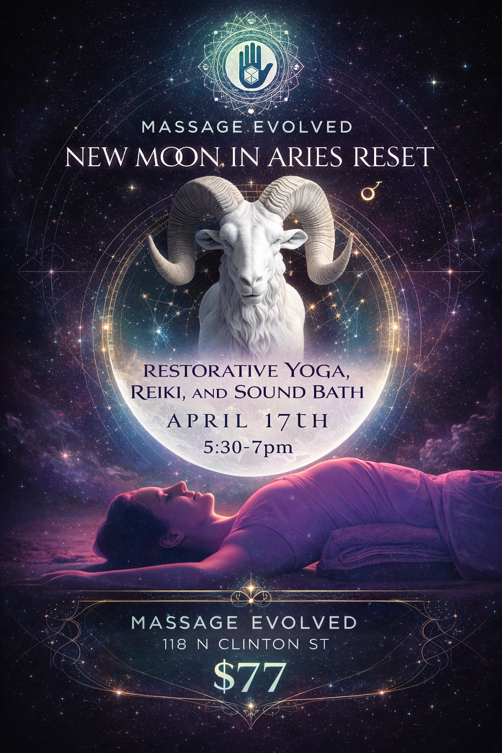 Step into a sacred, elevated space designed to restore your energy, awaken your inner fire, and realign you with your highest self. Under the potent New Moon in Aries—a portal for bold beginnings, clarity, and self-leadership—you are invited to release, reset, and intentionally call in what’s next.